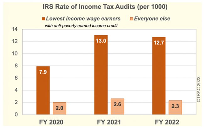 The taxpayer class with higher-than-expected audit rates—five and a half times more than nearly everyone else—was low-income wage-earners taking the earned income tax credit. This credit is provided to offset the taxes for the lowest wage-earners in the country.